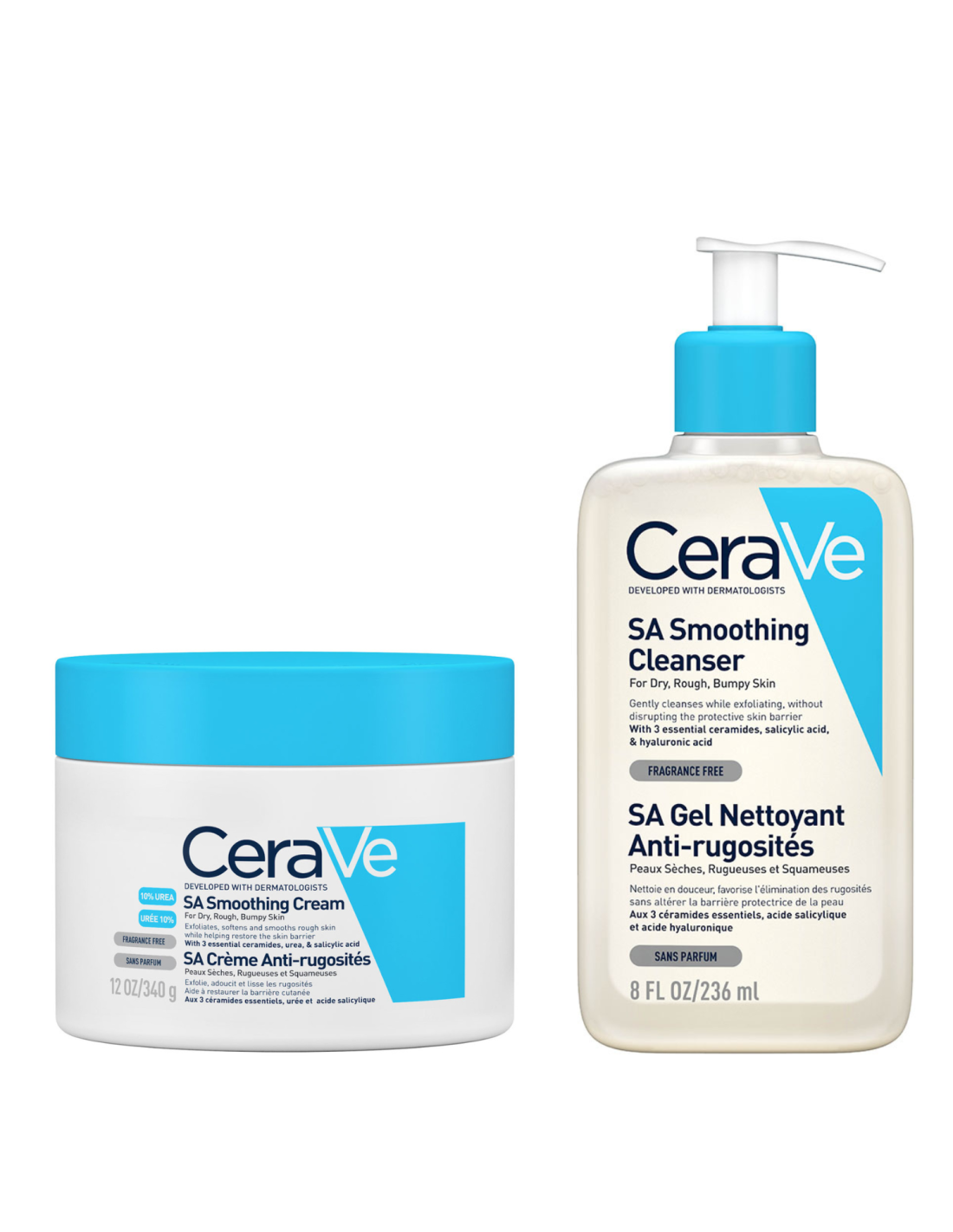 CeraVe SA Smoothing Cleanser gel za čišćenje suhe i grube kože + CeraVe SA Smoothing cream krema za zaglađivanje suhe i grube kože 340 g
