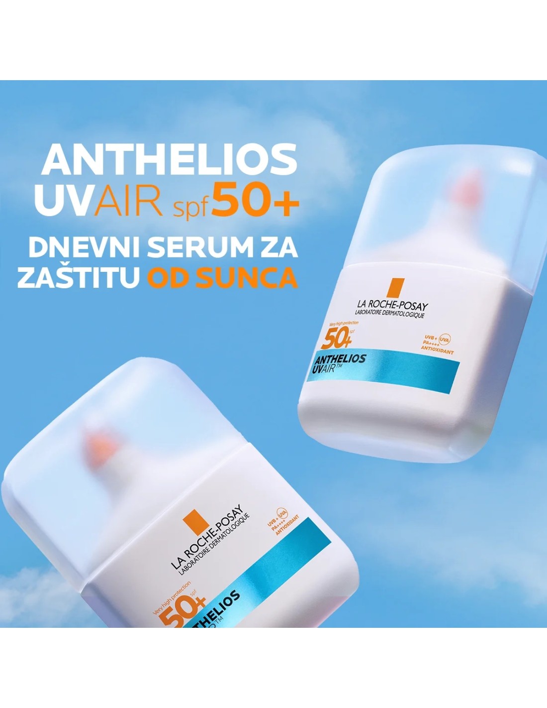 La Roche‑Posay Anthelios UVAIR sérum solaire SPF 50+ je ultra‑lagani dnevni zaštitni serum za lice s vrlo visokim SPF 50+ faktorom koji pruža pouzdanu zaštitu od UVB i UVA zraka. Namijenjen je svim tipovima kože i savršeno se uklapa u jutarnju rutinu njege prije šminke ili samostalno za svakodnevnu zaštitu.