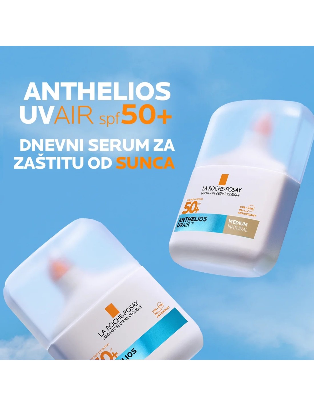 La Roche‑Posay Anthelios UVAIR Serum Sunscreen SPF50+ Medium je ultra‑lagani, tonirani serum sa zaštitnim faktorom SPF 50+ koji kombinira vrlo visoku zaštitu od sunca s nježnom nježnom njegom kože.