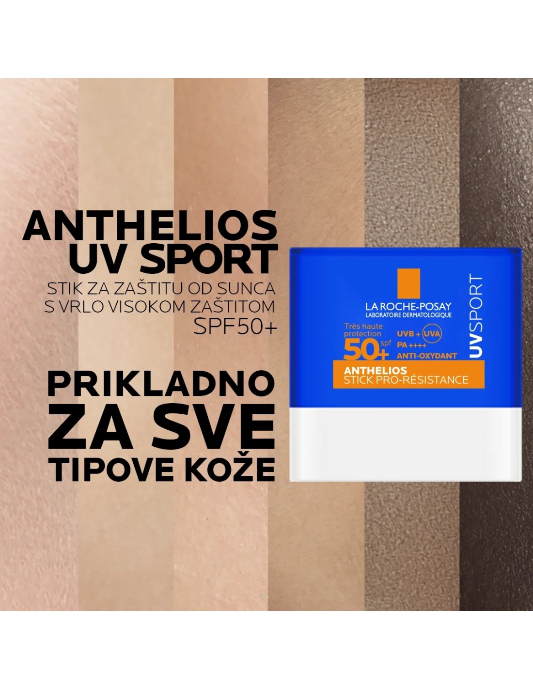 La Roche‑Posay Anthelios Stick Solaire Sport SPF 50+ je ultra‑praktična i vrlo visoka zaštita od sunca u obliku sticka, posebno dizajnirana za intenzivne sportske aktivnosti i vanjske aktivnosti. Nudi snažnu SPF 50+ zaštitu od UVA i UVB zraka u vrlo kompaktnoj formi koju je lako nanositi na osjetljiva područja poput nosa, ušiju, usana ili na teško dostupne dijelove kože bez ostavljanja bijelih tragova.