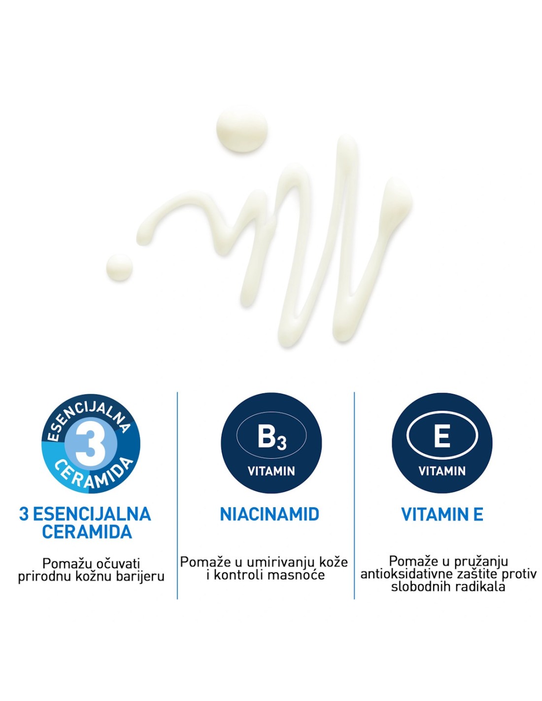 CeraVeov nevidljivi ""Dry Touch"" fluid za zaštitu od sunca pruža vrlo visoku UVB + UVA zaštitu koja će postati vaš prvi izbor. Ova je formula razvijena u suradnji s dermatolozima, a sadrži tri esencijalna ceramida i niacinamid. Ne samo da učinkovito štiti vašu kožu od štetnih UV zraka, već i aktivno jača njezinu prirodnu barijeru, istovremeno pružajući 12-satnu kontrolu masnoće i sjaja* za kožu koja ostaje svježa tijekom cijelog dana. Ova lagana i prozračna formula koja se brzo upija priprema kožu za nanošenje šminke. Nekomedogena i bez mirisa.