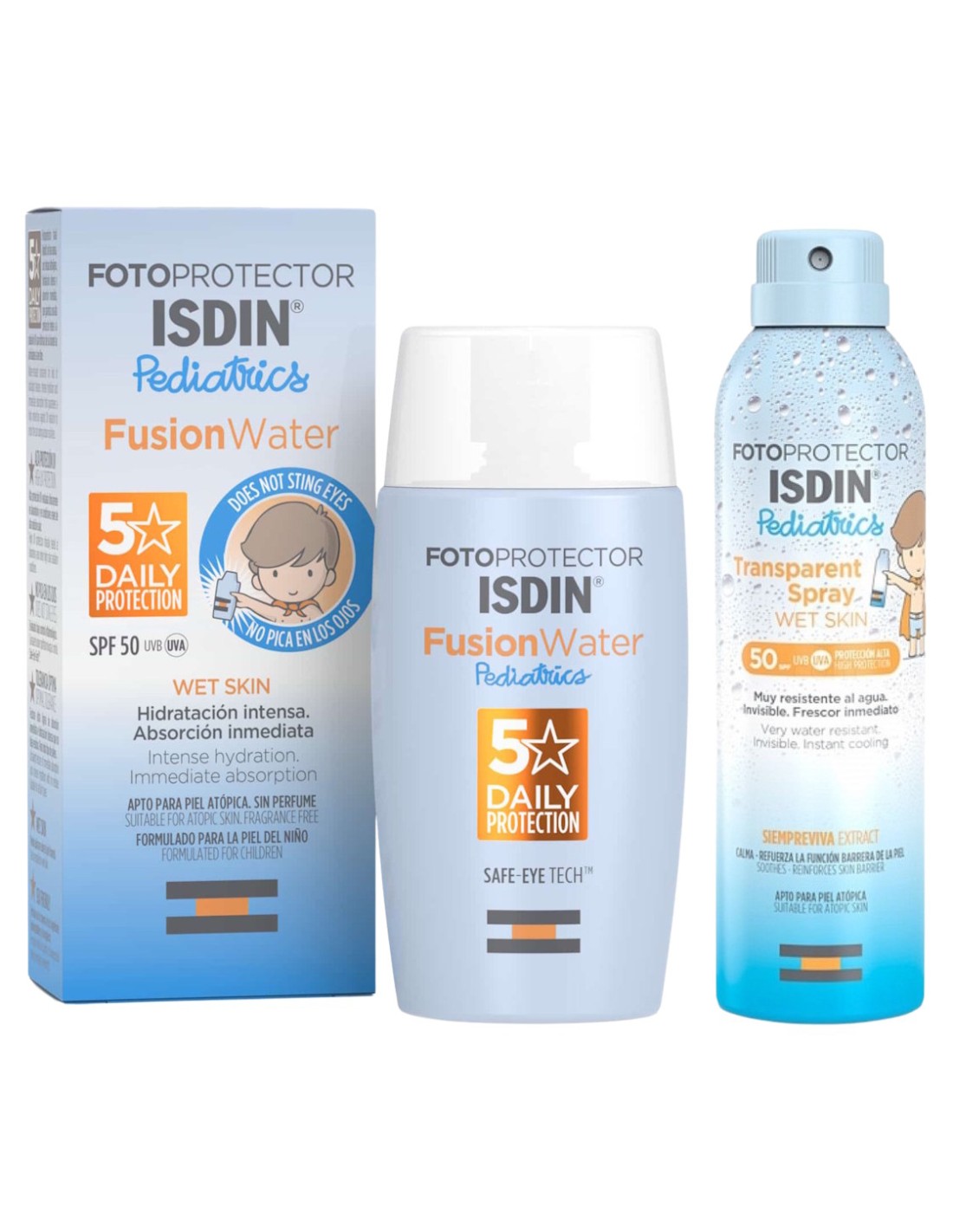 ISDIN Fotoprotector Transparent Spray Pediatrics SPF 50 + ISDIN Fotoprotector FusionWater Pediatrics SPF 50