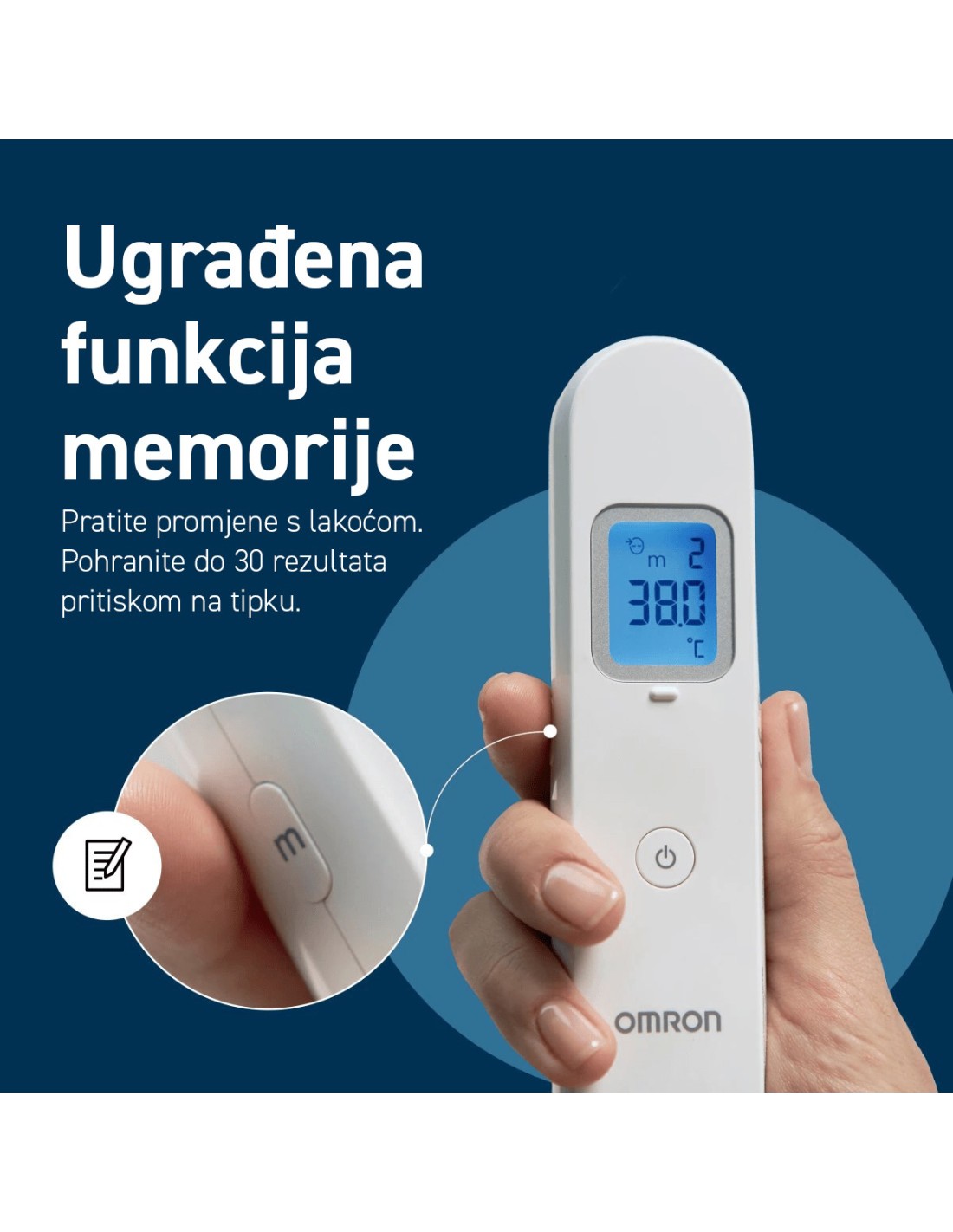 Dizajniran za obitelji koje žele brze, beskontaktne provjere temperature s točnošću i lakoćom. Napredna tehnologija senzora udaljenosti osigurava pravilno pozicioniranje za pouzdana očitanja, a sljedeće mjerenje moguće je unutar jedne sekunde. Toplomjer je tih, jednostavan za upotrebu jednom rukom i prilagođen za svakodnevnu upotrebu. Omogućuje mjerenje temperature na čelu i provjeru temperature tekućine. Ugrađena memorija pohranjuje zadnjih 30 mjerenja. Radi na dvije AAA baterije i otporan je na lagano prskanje vodom.