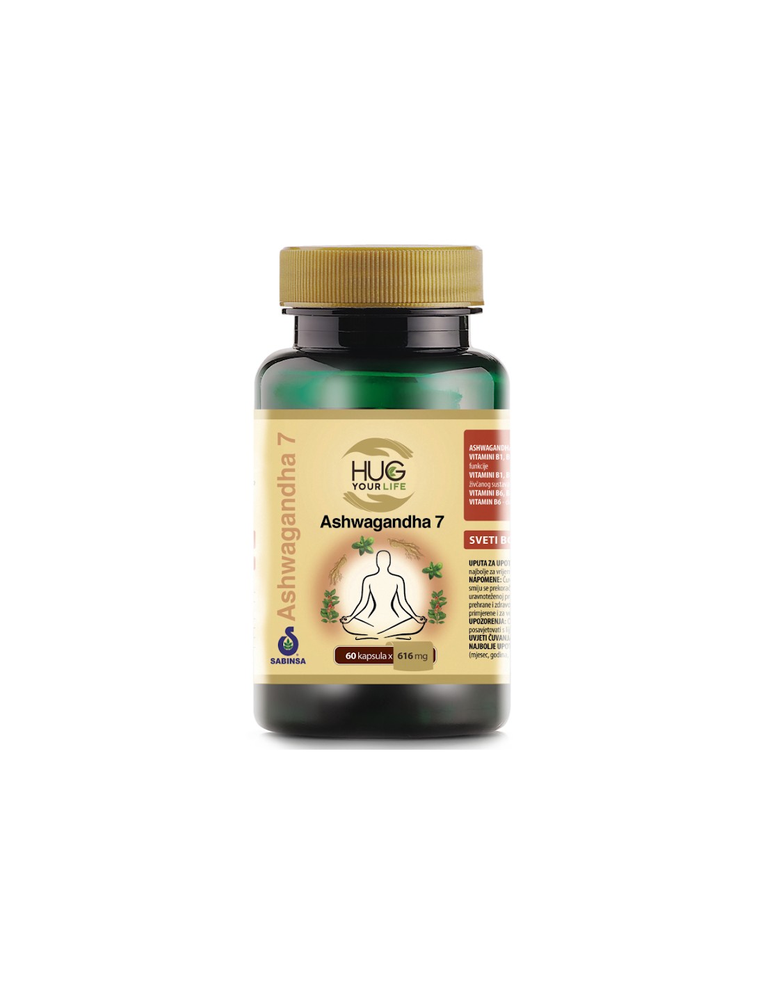 Sastav: suhi ekstrakt korijena ashwagandhe (Withania somnifera), standardiziran na min. 7% vitanolida, suhi ekstrakt lista svetog bosiljka (Ocimum sanctum), Suhi ekstrakt korijena sibirskog ginsenga (Eleutherococcus senticosus), standardiziran na min. 0,8% eleuterozida, zgušnjivač: hidroksipropil metil celuloza (kapsula), tvar protiv zgrudnjavanja: prirodne magnezijeve soli masnih kiselina, piridoksin hidroklorid, tiamin hidroklorid, cijanokobalamin