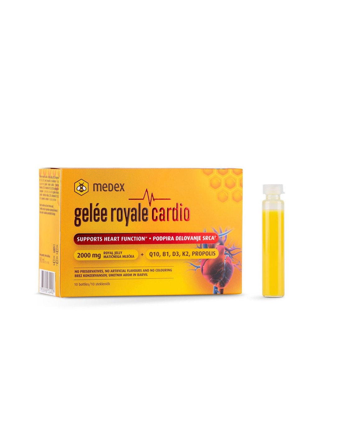 Gelée royale cardio pruža sveobuhvatnu podršku radu srca zahvaljujući vitaminu B1 i najjačem sadržaju matične mliječi u kombinaciji s Q10, vitaminima i propolisom.