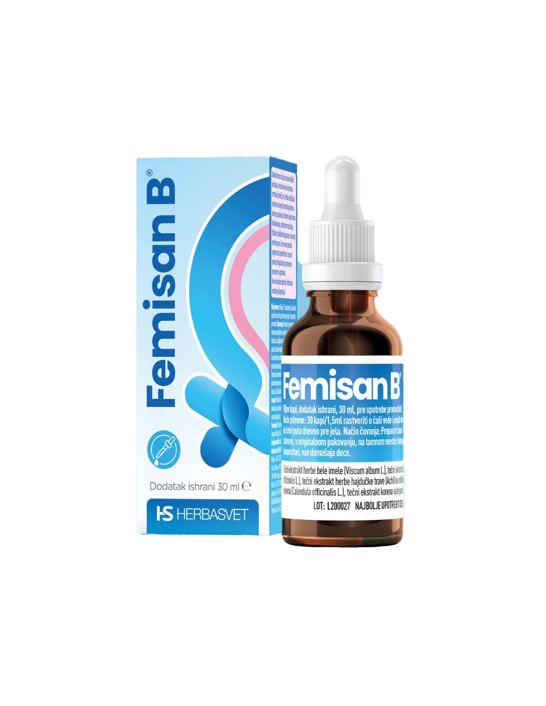 Femisan B, tekući biljni dodatak prehrani s matičnjakom, stolisnikom, nevenom, imelom i valerijanom