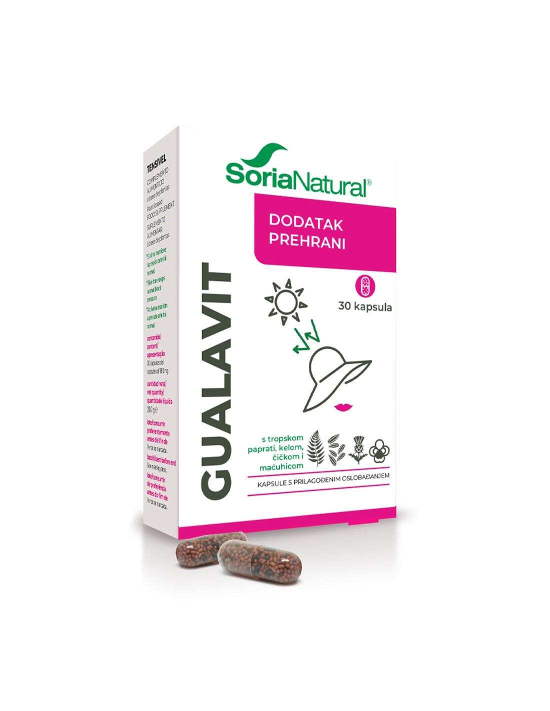 Gualavit kapsule su dodatak prehrani na bazi ekstrakta tropske paprati, kele, korijena čička i maćuhice.
