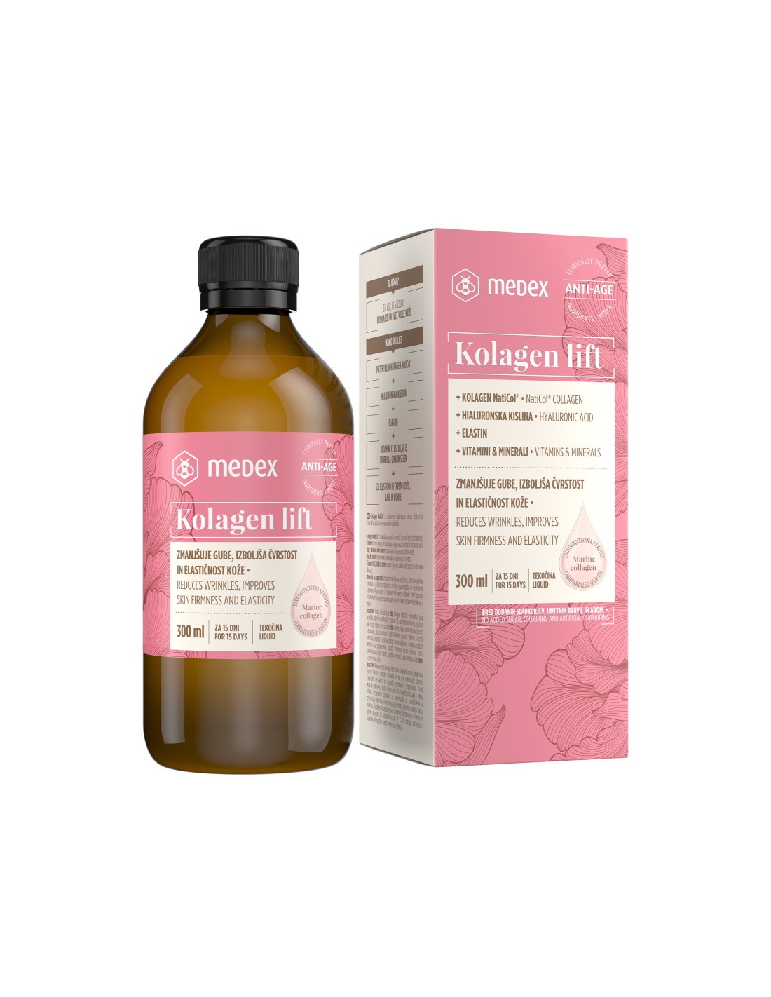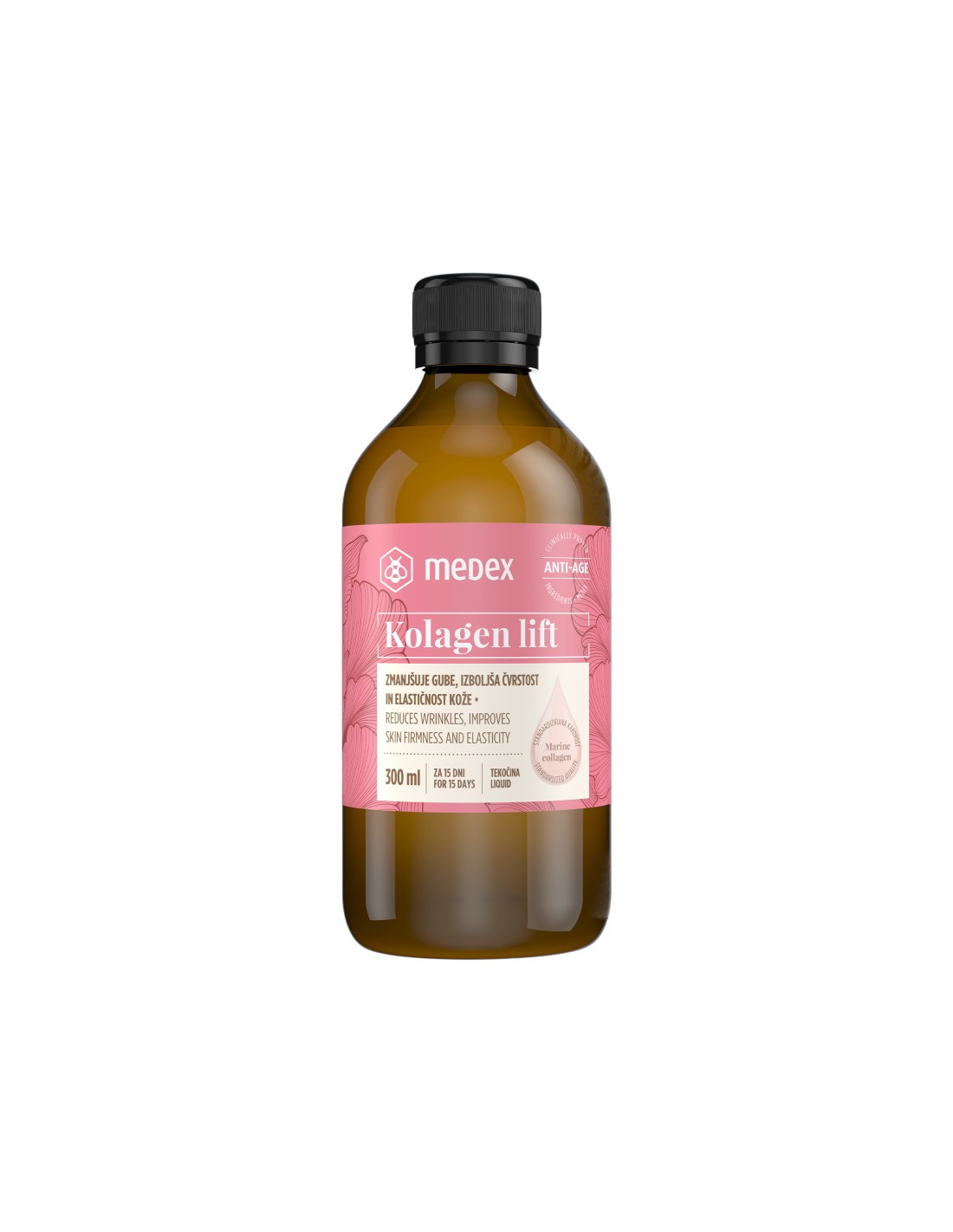 Tekući dodatak prehrani za smanjenje bora i pomlađeni izgled kože. Bez umetnih boja i aroma.