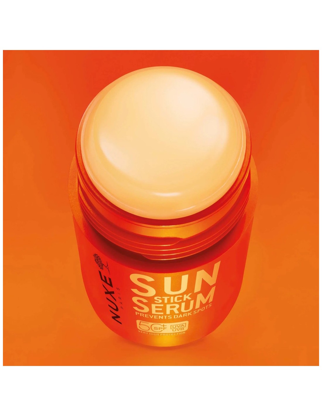 Ovaj serum za sunčanje u stiku SPF50+ štiti lice i izložena područja od UVA/UVB zraka te plavog svjetla, a istovremeno pomaže spriječiti nastanak pigmentacijskih mrlja.